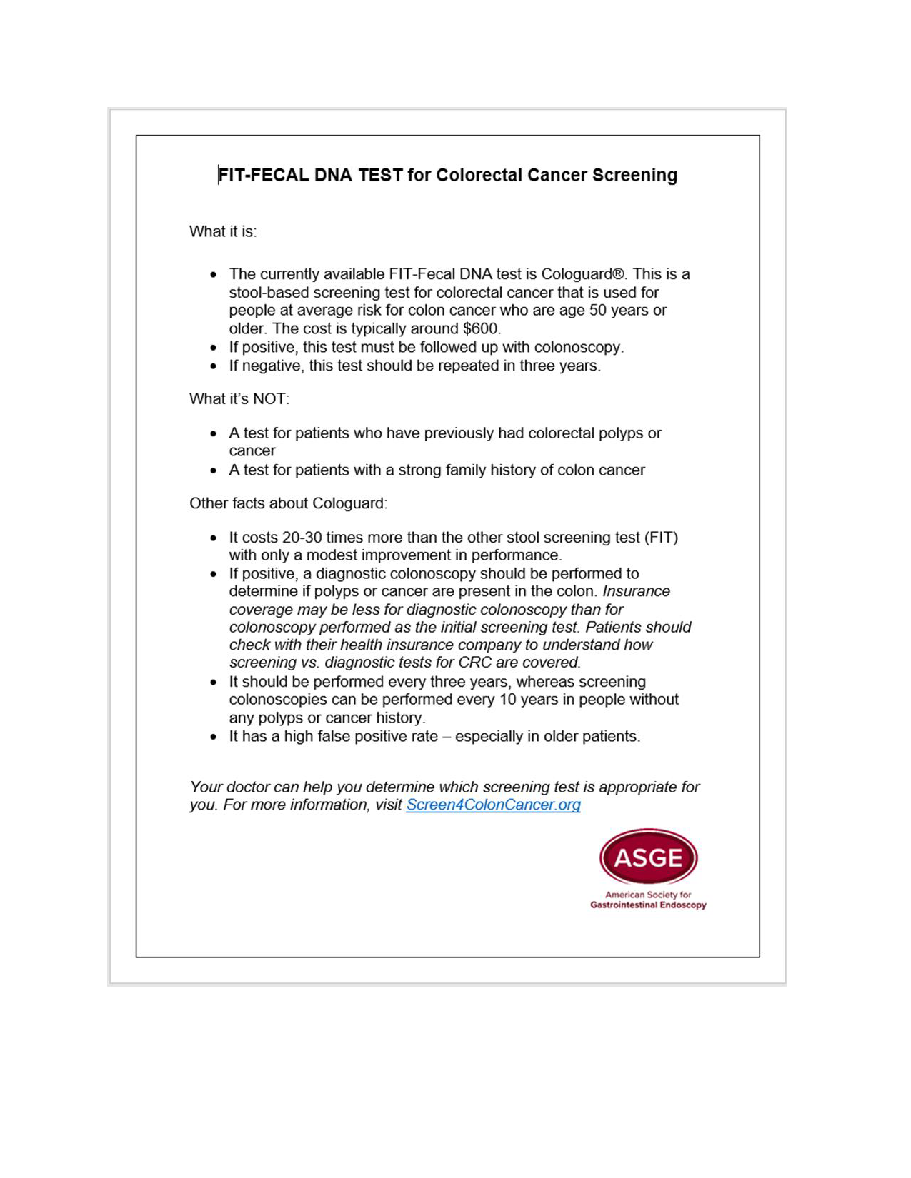 Fecal immunochemical test fit fit is a safe and painless stool based test used for screening people at average risk of developing colorectal cancer. The cost of the cologuard dna test is 599. Once a stool sample is taken the package will be picked up and returned to the cologuard lab. How much does cologuard cost.